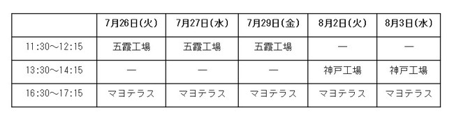 いずれの回も定員25名(先着順)、マヨテラスまたは工場見学と食品表示大研究の計45分のZOOMを使用したプログラムです。