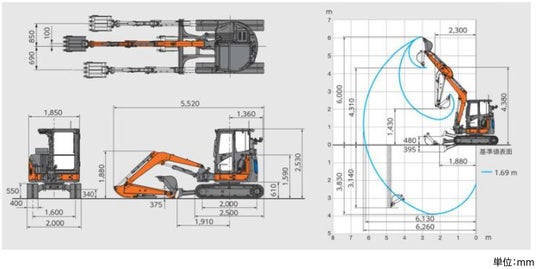 5.後方小旋回構造により、スペースが限られた現場でも安全かつ効率的な作業が可能
