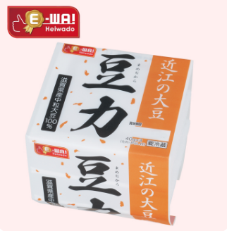 2014年の平和堂こだわりブランドE-WA!シリーズデビュー当初から販売し、2023年6月に累計販売数1,000万個を突破したするロングセラー商品です。今回販売する「E-WA! 豆力 絹とうふ」と同じ、滋賀県産大豆「ことゆたか」を原料に使用しています。