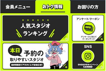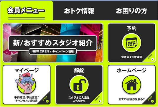 新/おすすめスタジオ紹介・予約・マイページ・解錠・ホームページ
