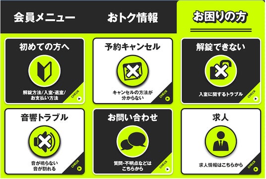 初めての方へ・予約キャンセル・解錠できない・音響トラブル