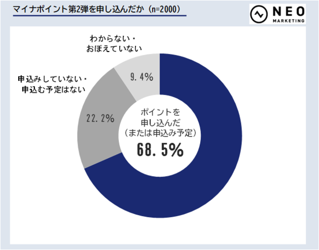 マイナポイント第2弾でポイントを申し込んだ・申込み予定の人は68.5%となり、そのお得さから「良かった」と感じている人が多いのかもしれません。