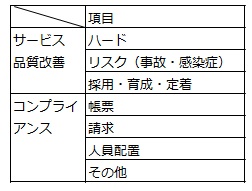 また、法令順守においては、1.帳票の状況、2.保険請求のプロセスと結果、3.人員配置の状況―等のそれぞれで、合計約50項目のチェック基準を設定しました。複数の事業所を管轄する責任者が、法令で定められた基準に沿った事業所運営ができていることを確認しながら、継続的な改善に取り組みます。
