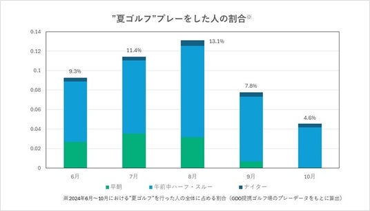 株式会社ゴルフダイジェスト・オンライン(本社:東京都品川区、代表取締役社長:石坂 信也、以下「GDO」)ではこの夏、早朝スルーや午前中のハーフまたはスループレー、ナイターなど日中の高温や強い日差しを避けるプレースタイルを提案しています。