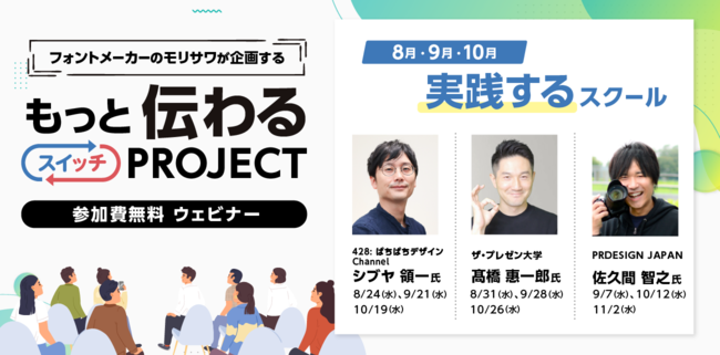 株式会社モリサワは、「フォントメーカーのモリサワが企画する もっと伝わるスイッチPROJECT」8月度オンラインセミナープログラムの申込受付を開始します。
