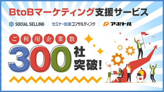 株式会社ウィルゲート(本社:東京都港区、代表取締役:小島 梨揮、以下 ウィルゲート)は、BtoBマーケティング支援サービスの導入社数が累計300社を突破したことをお知らせします。SNSを活用したソーシャルセリング支援やオンラインセミナー支援、企業データベース「アポトル」などを活用し、広告費ゼロで商談を生み出す仕組みづくりを支援しています。