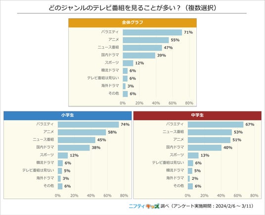 本調査では小中学生を中心とした子どもたちを対象に、よく見るテレビ番組のジャンルは何か、どの動画配信サービスをよく利用するかについてアンケートを実施し、1,733人から回答を得ました。