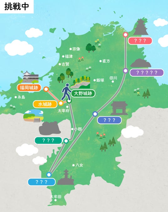 福岡城から歩いて小倉城まで!楽しく歩いてちょっとオトクなウォーキングアプリ「ふくおか散歩」の新バーチャルコース「福岡県内城跡巡りコース」