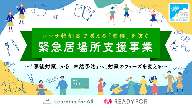 READYFOR株式会社(所在地:東京都千代田区、代表:米良はるか)と認定NPO法人Learning for All(所在地:東京都新宿区、代表理事:李炯植)は、休眠預金を活用し、総事業費約3億円の「コロナ物価高で増える『虐待』を防ぐ緊急居場所支援事業~『事後対策』から『未然予防』へ、対策のフェーズを変える~」プログラムにおいて、こどもの居場所事業を強化する団体や新たにこどもの居場所事業を開始する団体を対象に助成を行います。
