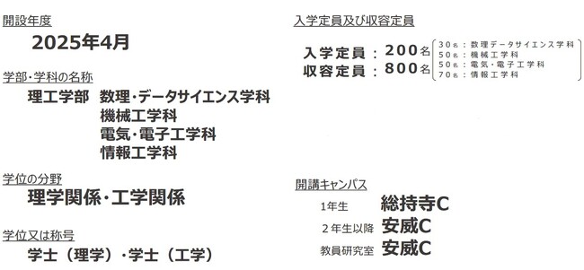 (1)理工学部に4つの学科を設置