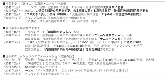 - しかしその後、安全保障面からの脱炭素政策の見直しや、反ESGの動きにより、サステナブル投資には逆風が吹いています