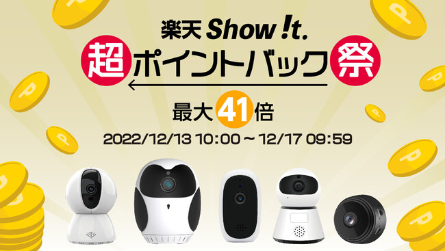楽天市場「Show !t」は、12月13日(火)10時~12月17日(土)09時59分まで開催される楽天ポイントバック祭に参加し、数量限定でセキュリティカメラ4種類の10%OFFセールを開催します。壁掛け対応、専用スタンドでどこでも気軽に設置可能な配線不要のフクロウ型セキュリティカメラは、双方向通話可能で子供部屋の見守りに、外出中のペットの見守りにも便利です。また、複数の部屋に設置するための、まとめ買いにもおすすめです。