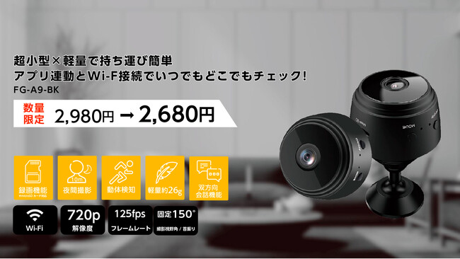 外出先から自宅の様子を見守りできて安心! 無線LAN接続 小型ネットワークカメラ FG-SCAM03-1-WH 【数量限定】セール価格2,680円(税込) → 通常価格2,980円(税込)