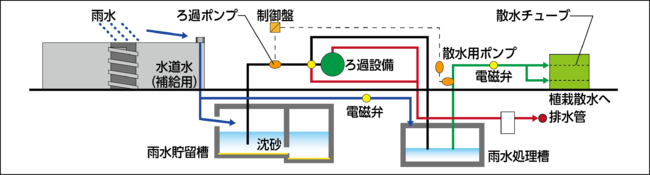 屋上に設置された太陽光発電設備で、共用部電力を賄う程の電力を館内に供給します。倉庫においてはLED照明のほか、人感センサーを採用しており、不在時には減光し消費電力量を低減しています。このほか、庫内の熱負荷軽減のための屋上緑化や、雨水を利用した植栽灌水設備、電気自動車(EV)へのエネルギーシフトを見据えた電気自動車充電スタンドの設置、敷地入口付近にシェアサイクル用のサイクルポートの整備等、様々な環境配慮型設備を導入しています。