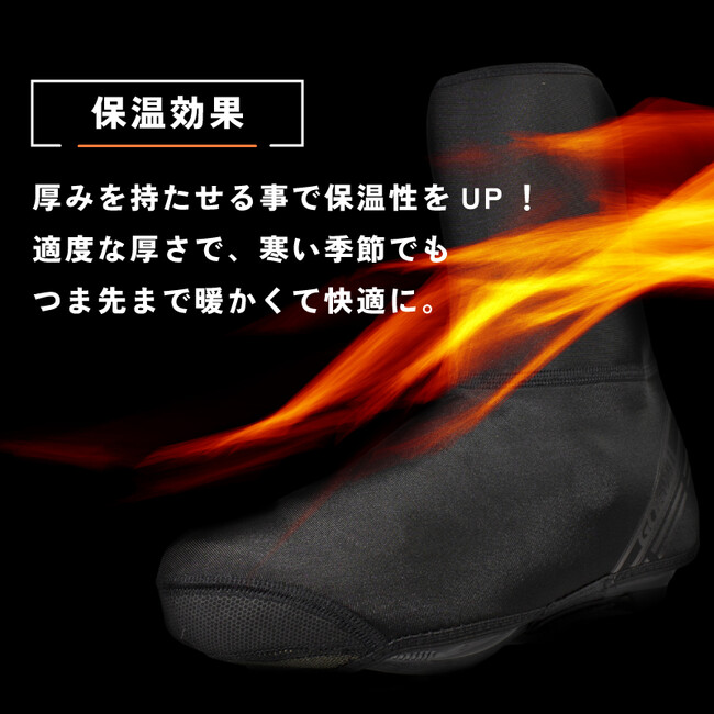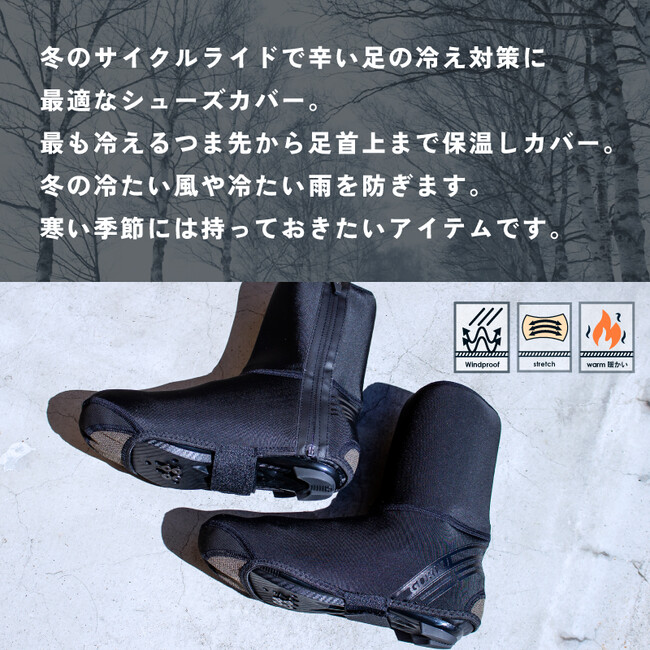 冬の寒い季節に最適な防風・防寒に保温性を兼ね備えたサイクルシューズカバーです。