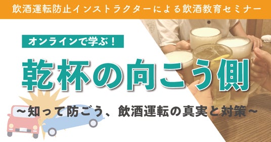 飲酒運転防止インストラクターによる飲酒教育セミナー オンラインで学ぶ! 乾杯の向こう側 ~知って防ごう、飲酒運転の真実と対策~7月22日(火)