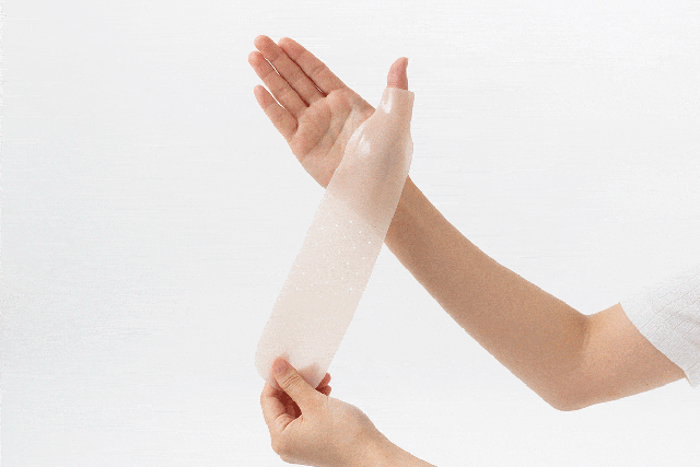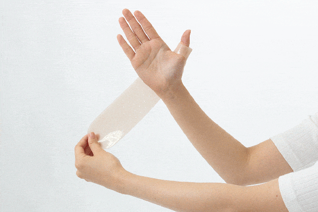 「巻くだけ簡単 手首・親指ゲルサポーター」は、薄くて軽い、優れた伸縮性のゲル素材を使用しています。少しでも手首への負担を減らせるように材料の選定をおこないました!