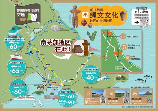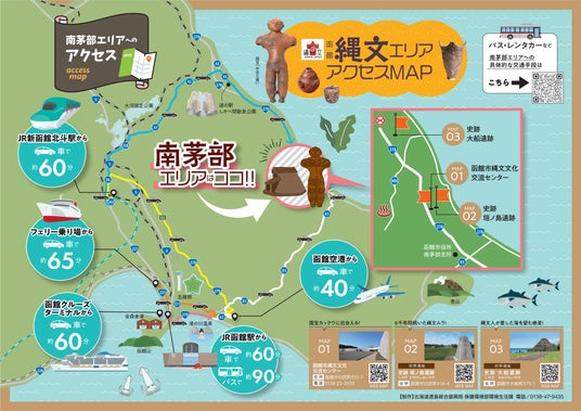 世界遺産「北海道・北東北の縄文遺跡群」の構成資産の所在地である南茅部エリアへのアクセスを分かりやすく表示!!