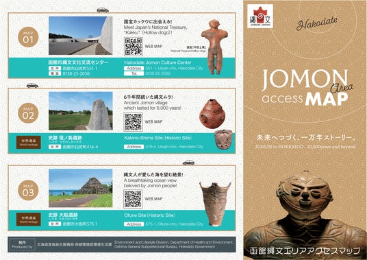 函館のゲートウェイであるJR函館駅、新函館北斗駅、函館空港、津軽海峡フェリー、函館クルーズターミナルから世界遺産「北海道・北東北の縄文遺跡群」の構成資産である垣ノ島遺跡や大船遺跡、国宝「中空土偶」を所蔵する函館市縄文文化交流センターの所在地である南茅部エリアへのアクセス情報を記した、日英中韓各言語ごとの多言語マップを制作し、各ゲートウェイに当該マップのパネルを設置!さらに、詳細なアクセス情報をホームページ上で公開しました。