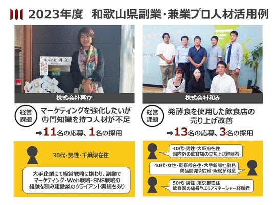 和歌山県は、引き続き、県内企業が副業・兼業プロ人材の活用により新しい取り組みの推進や経営課題を解決することが重要と考え、今年度も本取り組みを推進することとなりました。