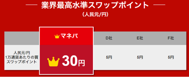 マネパの人民元はスワップポイントでも業界最高水準の金額をご提供しています。
