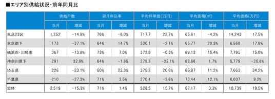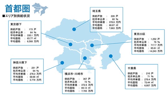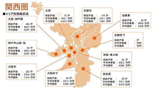 集計対象エリアは首都圏及び関西で、それぞれのエリア別相場情報、需給動向、着工件数等を集計しました。