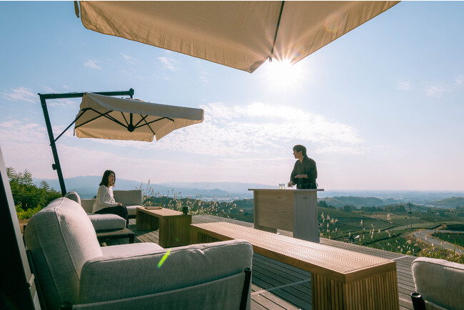 特長1、八女中央大茶園テラスの爽快な景色の中でリトリート
