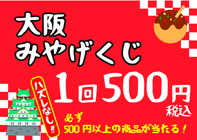 1回500円(税込)で必ず500円以上の大阪産グッズが当たる「大阪みやげくじ」も開催!