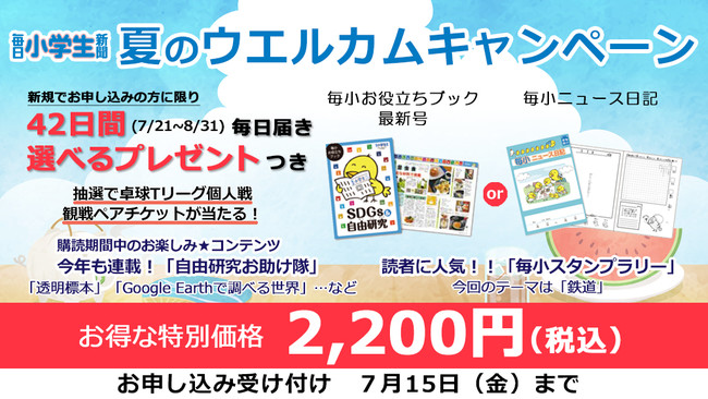 <毎日小学生新聞 夏のウエルカムキャンペーン概要>