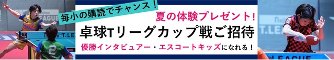 夏のウエルカムキャンペーン参加者の中から抽選で、8月13日と14日に神奈川県平塚市のトッケイセキュリティ平塚総合体育館で初めて行われる卓球Tリーグ「NOJIMA CUP 2022」の観戦チケット(2階自由席)をペア25組にプレゼントします。