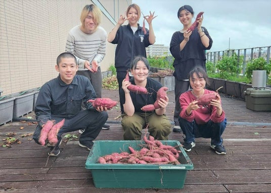 ※2『キャンパス農園班』…学生と教職員が学内の屋上や建物裏などのデッドスペースを利用した「キャンパス農園」で農業活動を実施しています。本学の連携自治体や、滝野川に本社のある株式会社日本農林社から提供いただいた江戸野菜等の伝統野菜や果樹を中心に栽培しています。