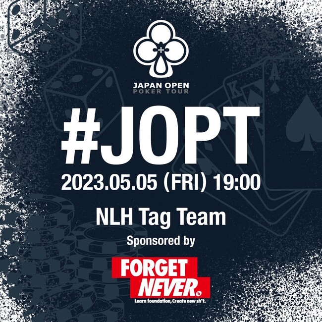 FORGET NEVER CLOTHINGは、、5月5日 (金) 19:00から行われる『Japan Open Poker Tour』の「NLH Tag Team」トーナメントをSponsored by FORGET NEVER CLOTHINGとしてサポート。全優勝者の中から1名に、アパレル年間契約選手として選出する予定。