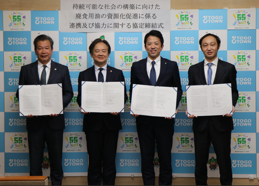 中部国際空港が、県内自治体である東郷町と、国内で唯一の国産SAF量産設備を有するSAFFAIRE SKY ENERGY、出資者である日揮HD、レボインターナショナルの4者を引き合わせたことにより、このたび、東郷町の家庭等から排出される廃食用油を回収してSAFに資源循環させるための協定を締結することとなりました。