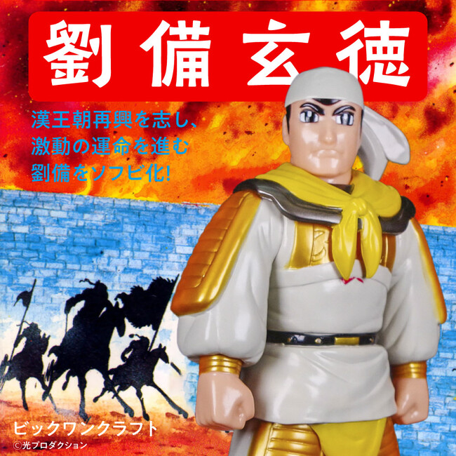 複雑なパーツ分割と細やかな塗り分けで、本編序盤の劉備を徹底再現! 是非、単行本1~2巻と比べてみてほしい。ソフビらしいディフォルメと充実の仕様で誕生した注目作は見逃せない。