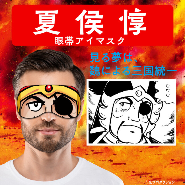 三国志ファンなら一度は憧れる夏侯惇の眼帯。そんな人気武将をモチーフとしたアイマスクは、睡眠中の移動時にも常ににらみを効かせる機能性も兼ね備えて(?)安心感は抜群。