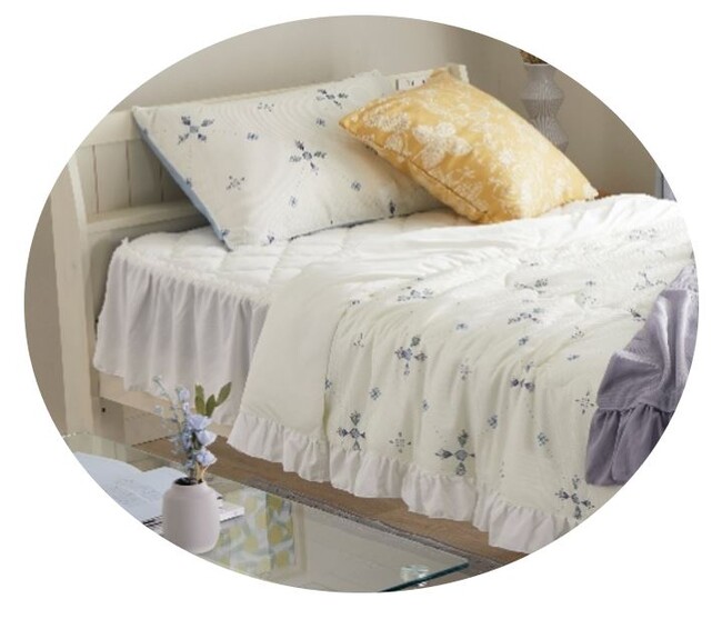 その他、洗濯機でも洗えたり、抗菌防臭、制菌加工、部屋干し臭抑制、消臭加工、湿気の多い時期でも蒸れにくい吸放湿わたの使用など、夏のお困り事を解決する機能が搭載されている商品も多数展開しております。