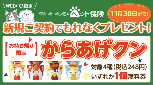 <対象者>対象期間中に「SBIいきいき少短のペット保険」にWEB申し込みをしていただき、かつ、ご成約されたすべての方