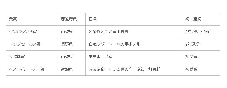 - 宿泊売上実績やお客さま評価の高い28宿を表彰、7宿が初受賞 -