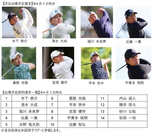 4月10日から行われる国内男子ツアー開幕戦となる「東建ホームメイトカップ」には、昨シーズン1勝を挙げ、国内男子ツアー3勝の木下稜介をはじめ、年間を通して上位成績を収めた清水大成や、堀川未来夢も参戦しツアーを盛り上げます。
