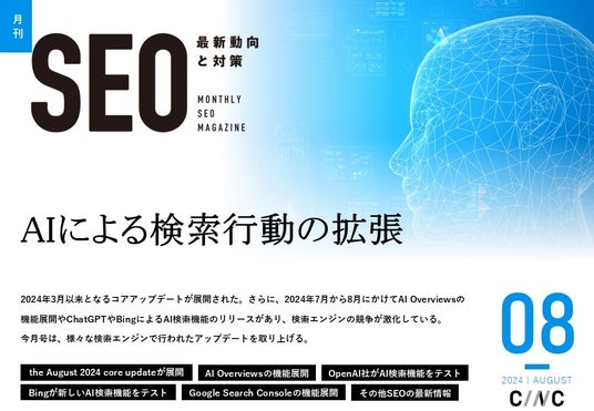 株式会社CINC(本社:東京都港区、代表取締役社長:石松友典、以下CINC)は、毎月特定のテーマのSEO最新動向と対策についてレポートする「月刊SEO」の8月号を公開しました。