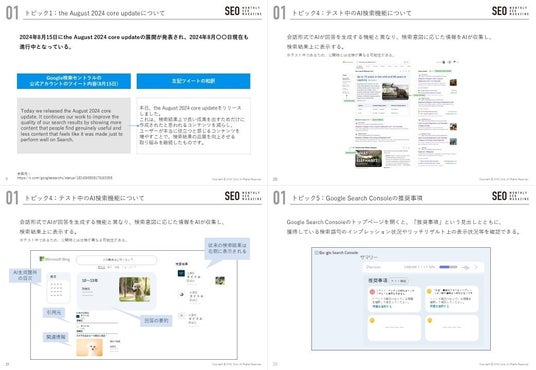 8月号の月刊SEOでは、主にGoogleからのリリース情報をピックアップし解説するとともに推奨アクションを記載しています。