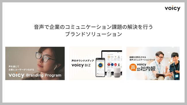 Voicyでは、企業のコミュニケーション課題に対し音声で解決を行う3種類の法人向けブランドソリューションを提供しています。