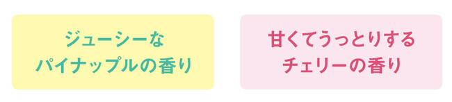 ハンドクリームには保湿成分のパイナップ果実エキス(パイナップルの香り)、セイヨウミザクラ果実エキス(スウィートチェリーの香り)も配合。