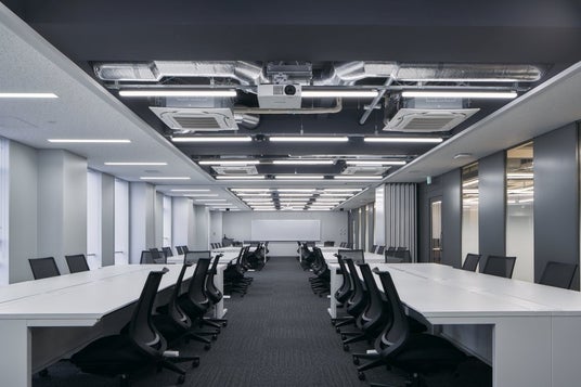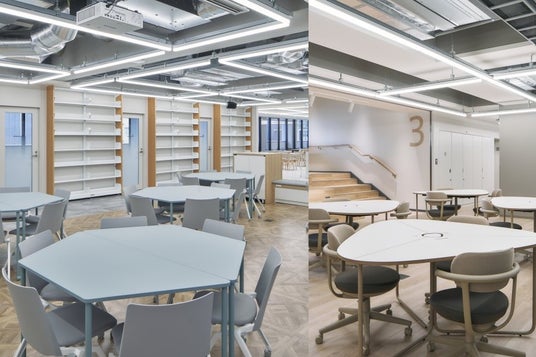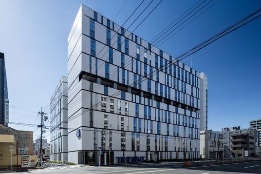 8階建ての新キャンパスは、バーコードをイメージしたデザインです