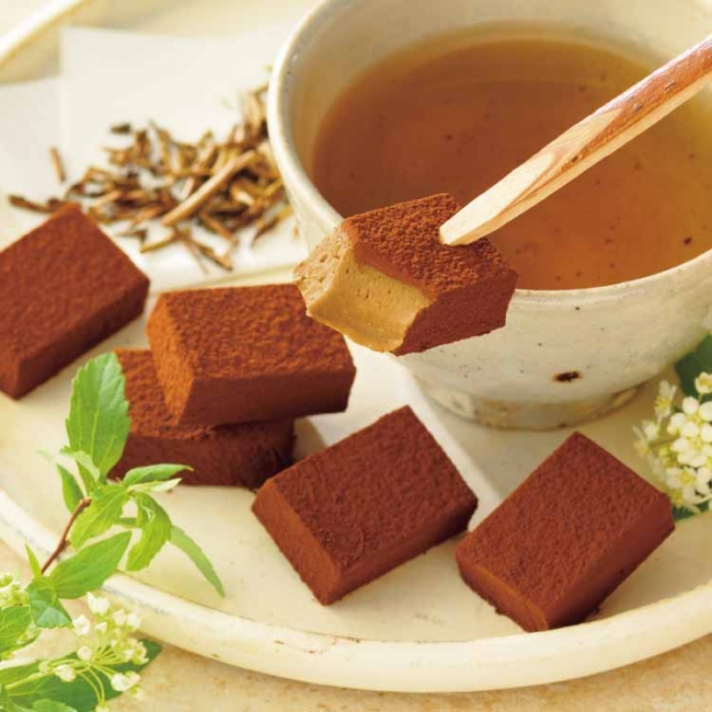 炭火焙煎した香ばしいほうじ茶が香る、和の生チョコレート