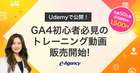 “おもてなしを科学する”株式会社イー・エージェンシー(東京都千代田区、代表取締役:甲斐真樹、以下イー・エージェンシー)は2025年2月5日(水)、Google アナリティクス 4 プロパティ(以下、GA4)導入後の活用方法にお悩みの方や学習に課題を抱えている方をサポートするため、オンライン学習プラットフォーム「Udemy」にて、GA4の基礎をしっかり学べるトレーニング動画の販売を開始しました。