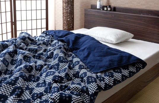 久留米絣は、さらりとした肌ざわりが特徴の天然素材のため汗ばむ季節でもベタつきにくく、肌にやさしく寄り添うため、夏の寝具として理想的な素材です。