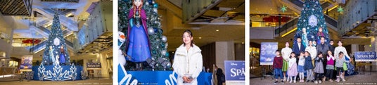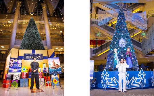 2014年に日本で劇場公開され、今年で日本公開10周年を迎えた『アナと雪の女王』。作品の中の印象的なモチーフである雪の結晶をまとった「FROZEN CRYSTAL TREE」がエルサやアナ、オラフのスタチューとともに、煌びやかに空間を彩ります。約9mの特別なツリーは、オーロラが姿を現す光と音の演出も行われます。