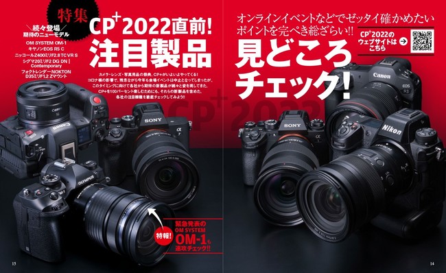 そこで、本特集ではCP+2022を100パーセント楽しむためにも、それらの新製品を含めた各社の注目製品を徹底チェック。発売前から話題のOM SYSTEM OM-1やキヤノンEOS R5 Cなどの最速レポートもお届けします。