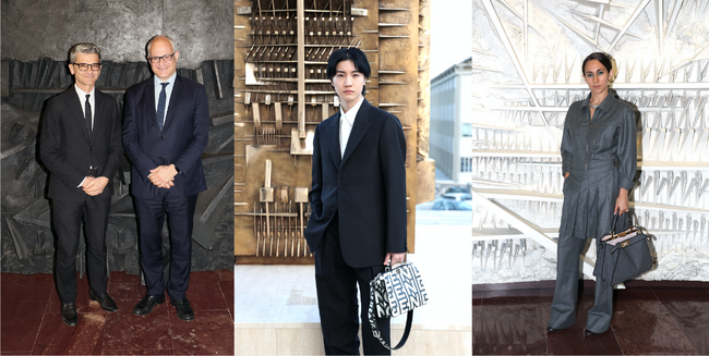 会場には、イタリア経済開発省のアドルフォ・ウルソ(Adolfo Urso)大臣や、ローマ市長のロベルト・グアルティエーリ(Roberto Gualtieri)、フェンディ チェアマン兼CEOのセルジュ・ブランシュウィッグ(Serge Brunschwig)、フェンディ ジュエリー アーティスティック ディレクターのデルフィナ・デレトレズ・フェンディ(Delfina Delettrez Fendi)をはじめ、俳優のジャン・ルイス・カステヤノス(Jan Luis Castellanos)、ニーナ・ポンズ(Nina Pons)、さらに日本からは俳優・アーティストの桜田通など各国のセレブリティが集結し、エキシビションのオープニングを祝福しました。